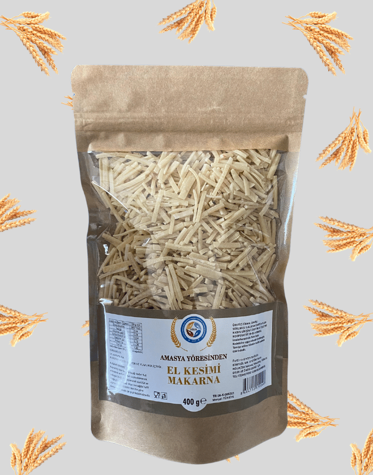 Özenle yoğrulan hamurun ince açılıp, tamamen el emeğiyle kesilmesiyle hazırlanan El Kesimi Makarna, geleneksel lezzetleri sofralarınıza getiriyor. Erişteden farklı olarak kavrulmadan, doğal yollarla kurutulan bu makarna, besin değerini koruyarak sağlıklı ve doyurucu bir alternatif sunuyor. Katkı maddesi içermez, ev yapımı lezzetiyle her lokmada doğallığı hissettirir. İster domates soslu ister yoğurtlu, her tarife yakışan bu makarna ile sofralarınızı şenlendirin!